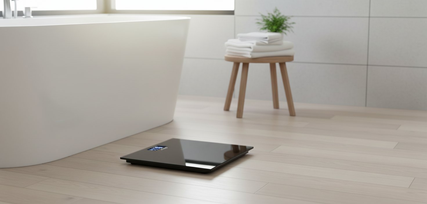 • Elegancja w industrialnym stylu. Ta waga osobowa z podświetlanym wyświetlaczem i precyzją 0,1 kg to idealne narzędzie do monitorowania wagi, doskonale pasujące do nowoczesnych wnętrz.
