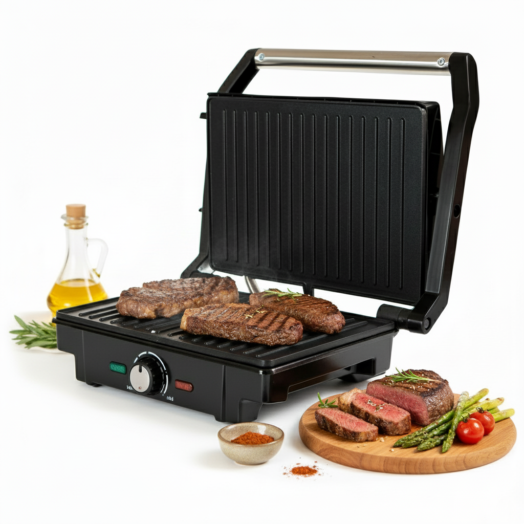 Velmihorké desky elektrického grilu vám umožní připravovat šťavnaté a chutné pokrmy. Jakmile se opékaný pokrm dotkne povrchu grilu, začne prskat a hnědnout, čímž se vytvoří lahodná křupavá kůrka, která si uvnitř uchová veškerou chuť a vůni. Vaše chuťové buňky si tak mohou vychutnat výraznou chuť pokrmu.
