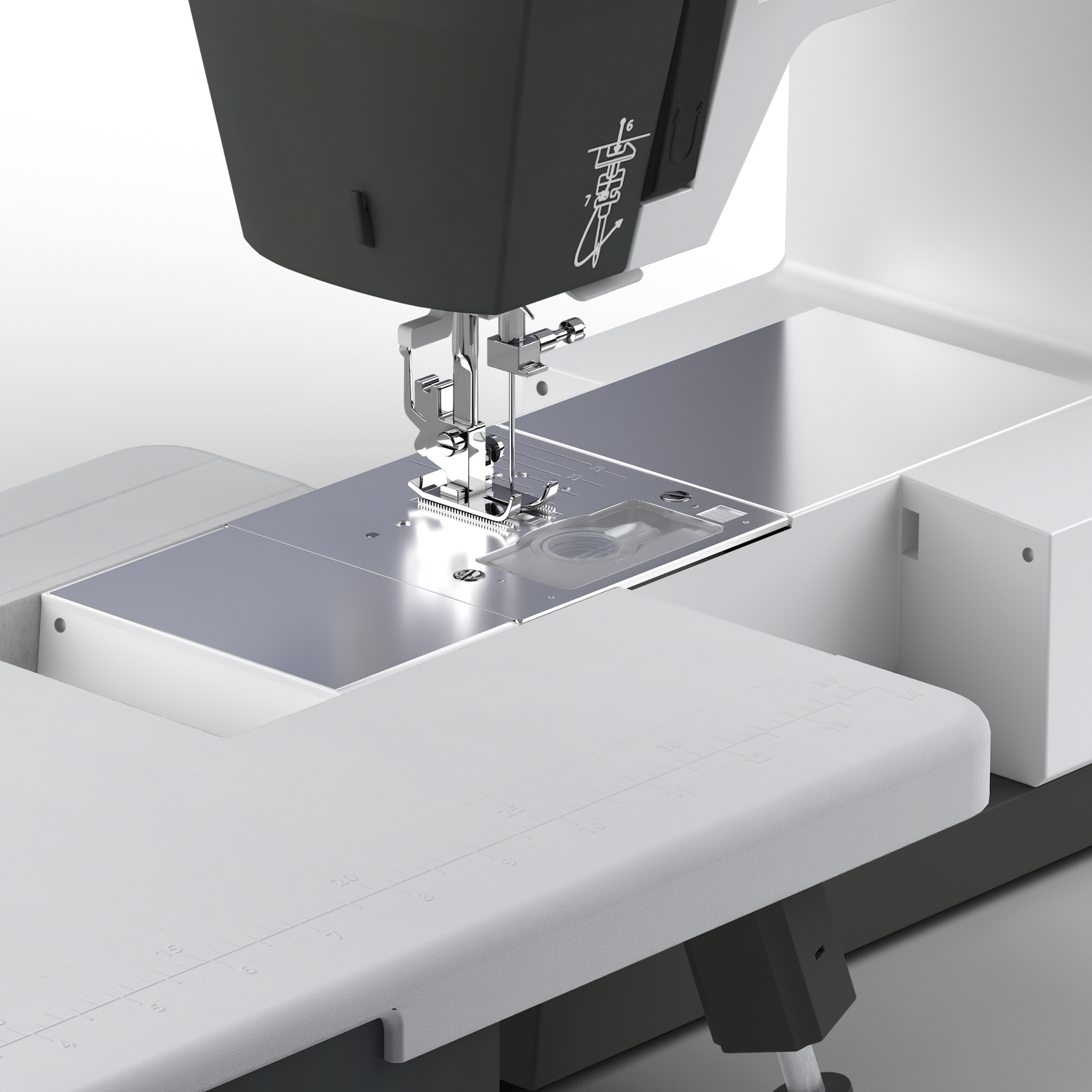 Chwytacz rotacyjny sprawia, że maszyna pracuje ciszej w stosunku do chwytacza wahadłowego, a możliwość regulacji długości (0–4,5 mm) i szerokości ściegu (0–6 mm) pozwala dopasować maszynę do każdej tkaniny.
