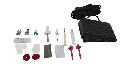 MIA hat einen Druckknopf-Fuß, einen schwingenden Fadengreifer und die Möglichkeit, rückwärts zu nähen. Zu ihrem Repertoire gehören Grund-, Elastik- und Overlockstiche. Außerdem verfügt sie über eine Funktion zum Einstellen der Länge.