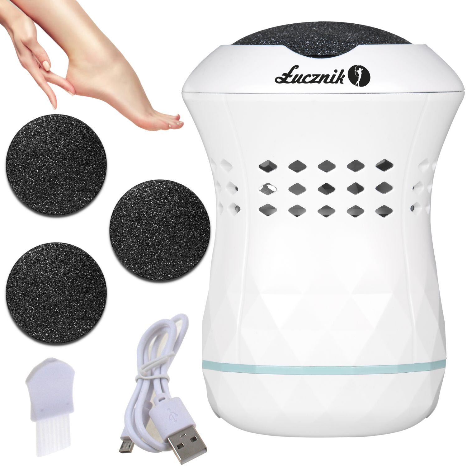 - A practical foot care set consisting of the Lucznik AT-2020 file and two interchangeable abrasive discs.