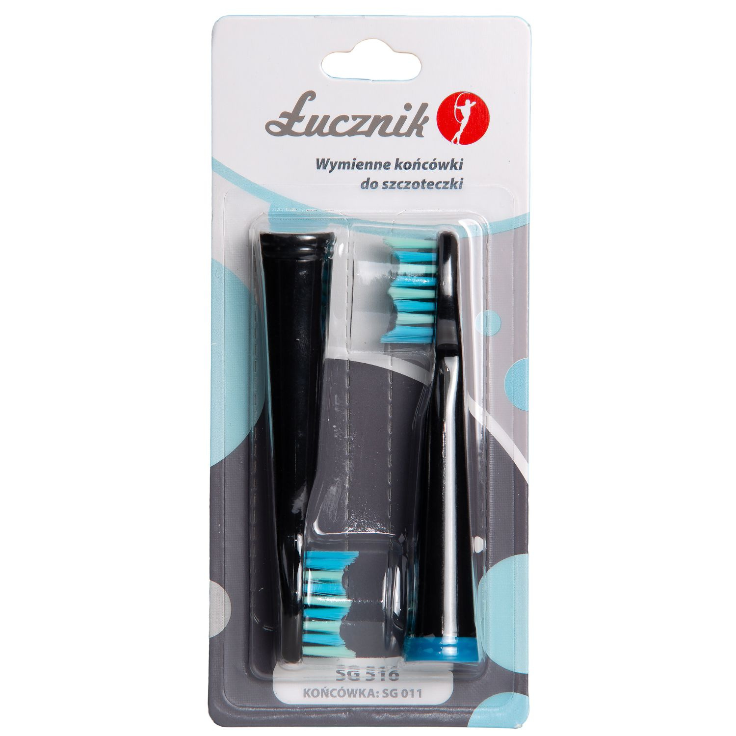 Set of two tips SG-011 for Lucznik SG-516 travel sonic toothbrush in black. They also fit Lucznik SG-515 and SG-508 toothbrushes.