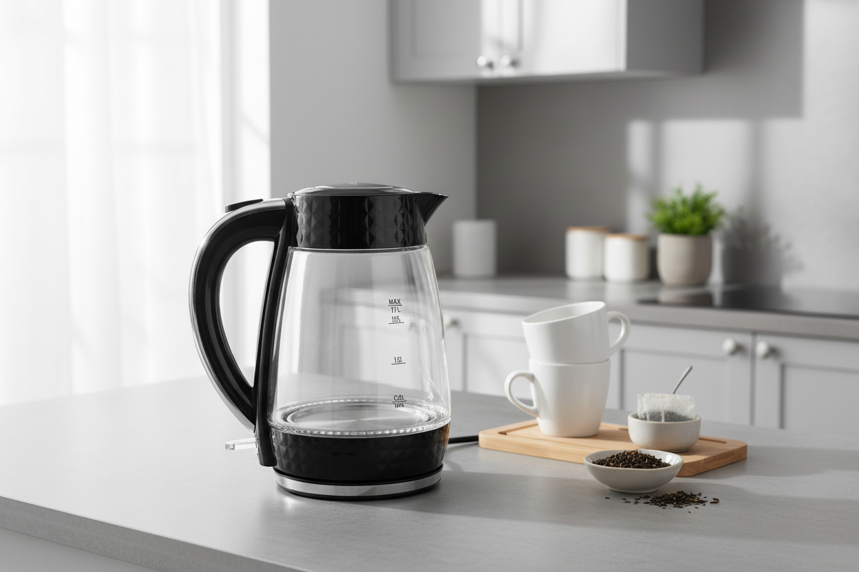- Extremely stylish and decorative black electric kettle made of glass and equipped with a hidden heating element - chic and elegant in any kitchen!