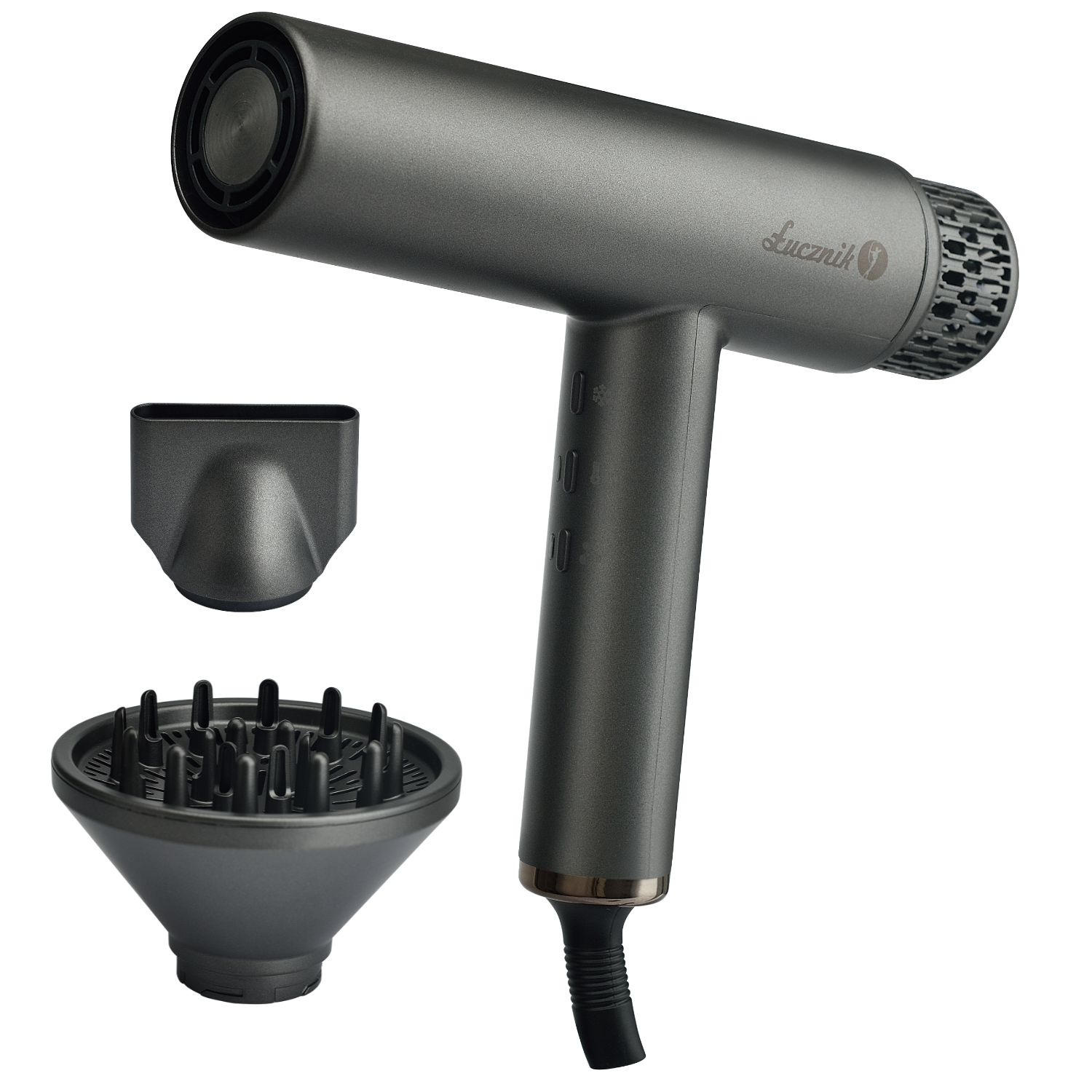 Thanks to the advanced BLDC motor, Łucznik HyperAir IQ 1.0 operates exceptionally quietly – even at maximum speed, it generates only 75 dB. This noise level ensures comfortable use without the annoying sound typical of traditional hairdryers. You can style your hair in the morning or evening without disturbing others in your household.