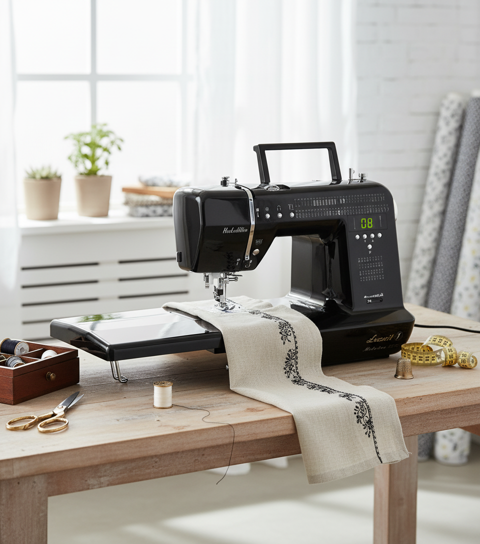 Naturally, the Malvina also has features and conveniences appropriate for machines of a lower class than it, such as automatic threading of threads on the machine's needle, LED lighting over the work area, automatic button hole hemming or reverse sewing . Another advantage of the machine are the function buttons, which make sewing work much more pleasant, saving your time and nerves. One of them is the automatic needle lift button, thanks to which we can program to finish sewing always with the needle lifted up or stuck in the fabric. The auto-lock button, meanwhile, allows us to machine loop the beginning and end of a stitch to prevent it from snapping.