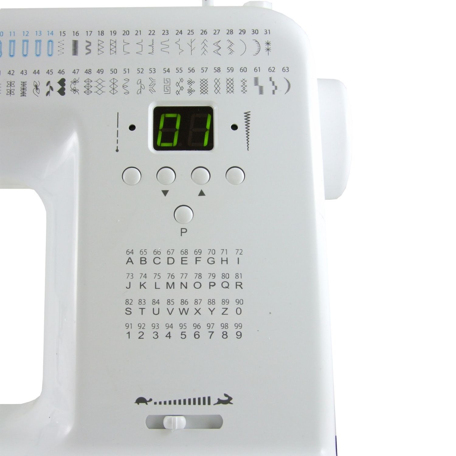 - 63 utility stitches, including overlock, elastic, decorative and covered stitch
