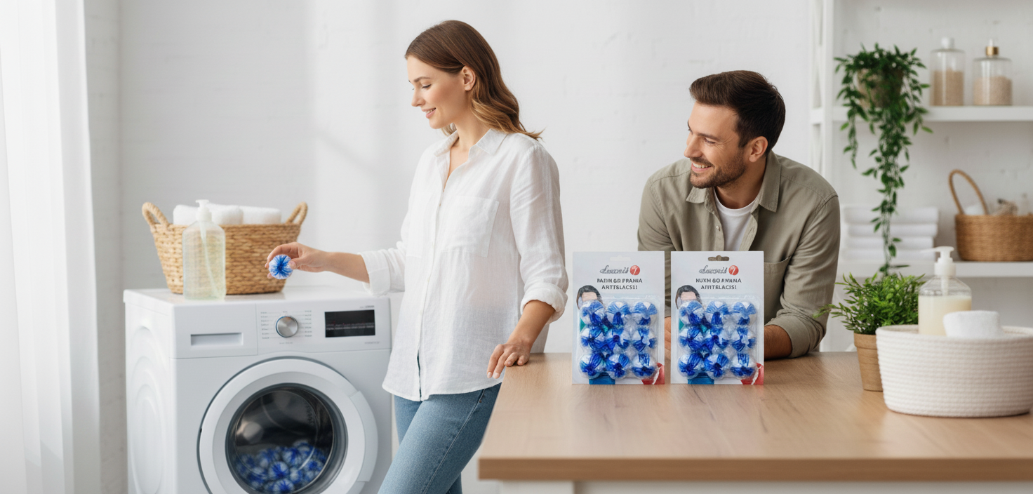 Kulki nadają się do wielokrotnego prania, należy je wrzucić do pralki razem z praniem, a ich liczbę dopasować do ilości pranych rzeczy - tak, żeby mogły się swobodnie poruszać podczas prania.