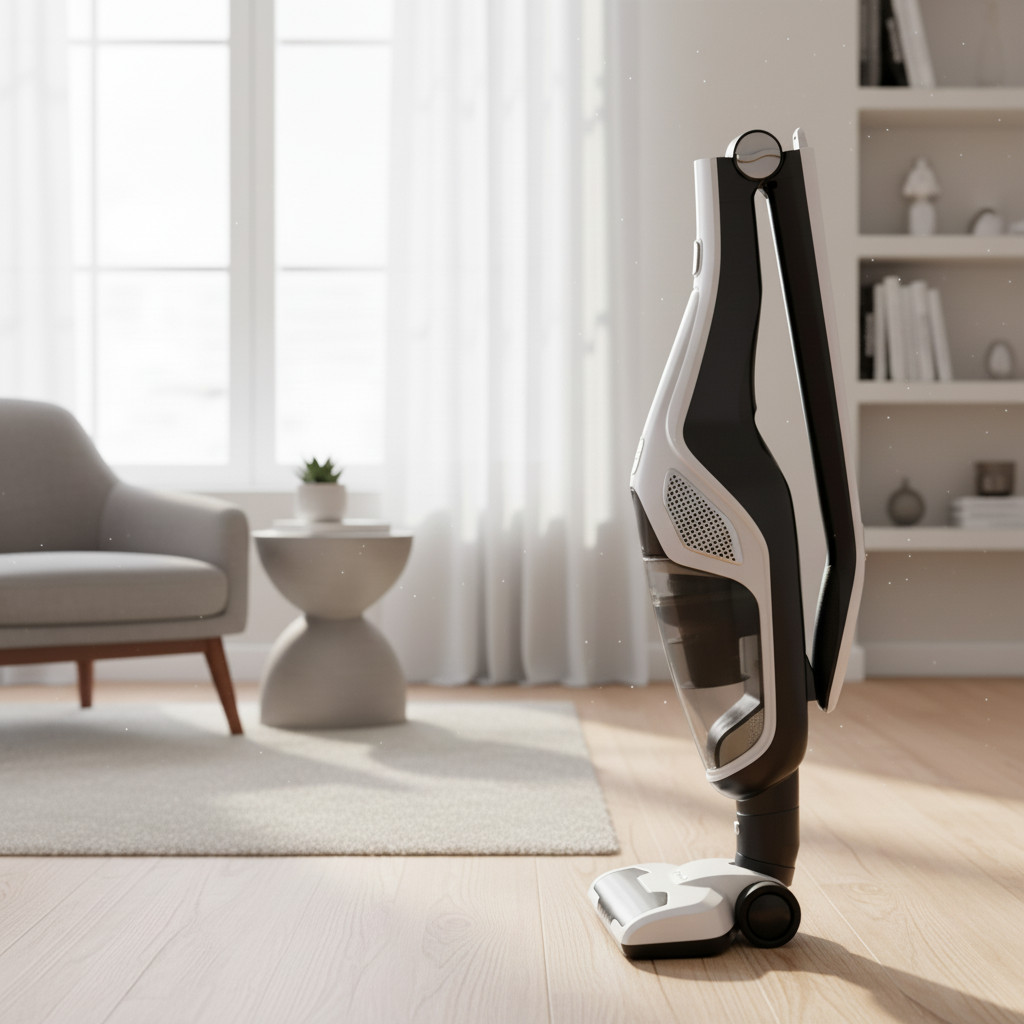 Urządzenie waży jedynie 2,5 kg, co czyni sprzątanie mniej męczącym. Kompaktowa, składana konstrukcja sprawia, że odkurzacz można przechowywać nawet w niewielkich przestrzeniach. Dzięki wbudowanemu oświetleniu LED łatwiej dokładnie posprzątać słabo oświetlone miejsca, takie jak przestrzenie pod meblami.