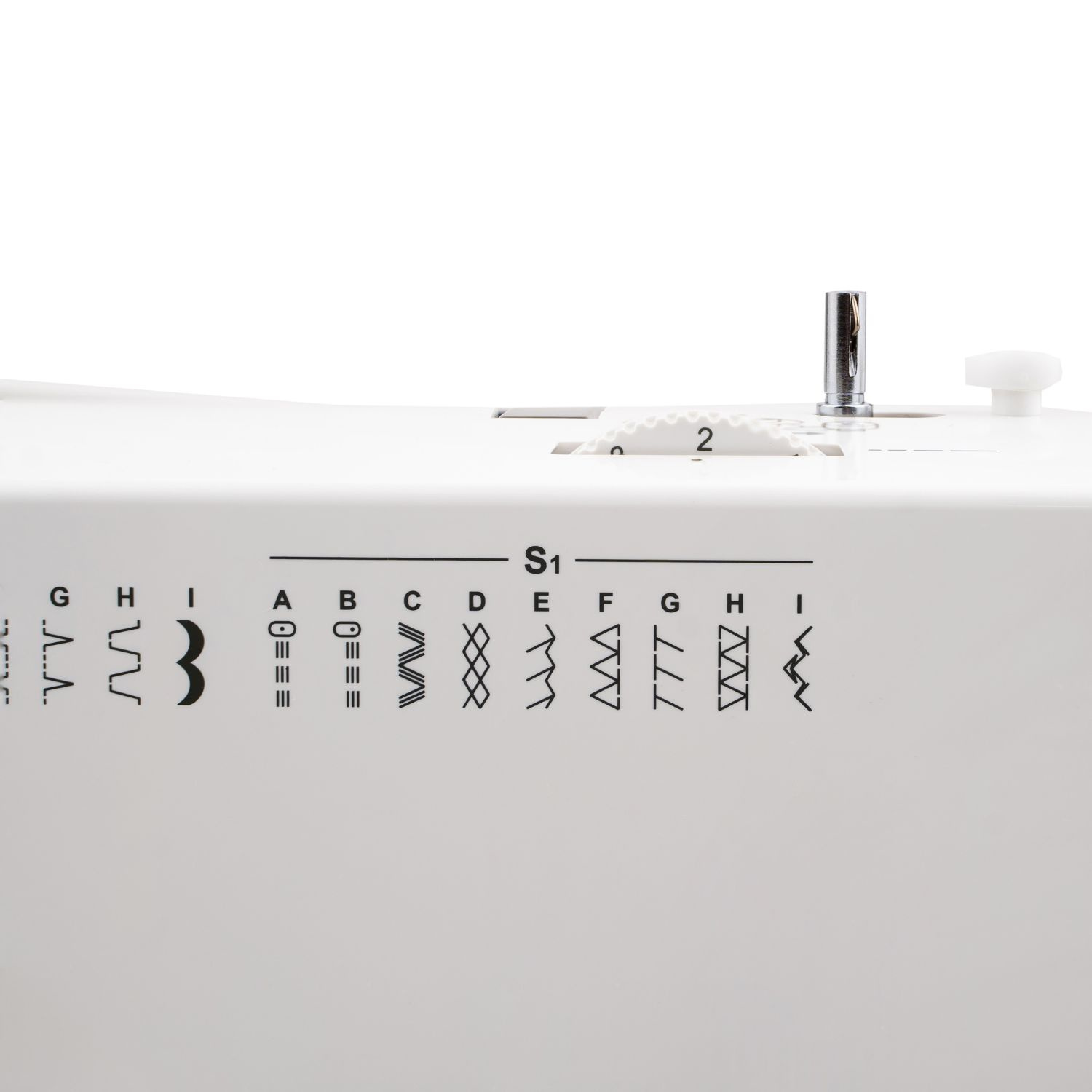 • Pełna kontrola dzięki precyzyjnej regulacji długości ściegu (0-4 mm) i naprężenia nici górnej (0-9).
