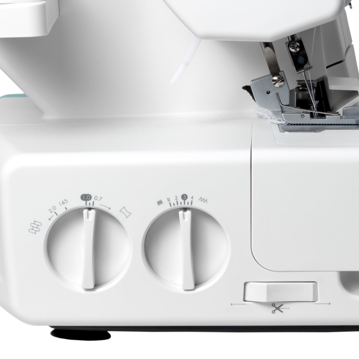 Z zwiększoną powierzchnią szycia, zaokrąglonym ramieniem i stabilnymi podnóżkami, te overlock zapewnia komfort i precyzję.