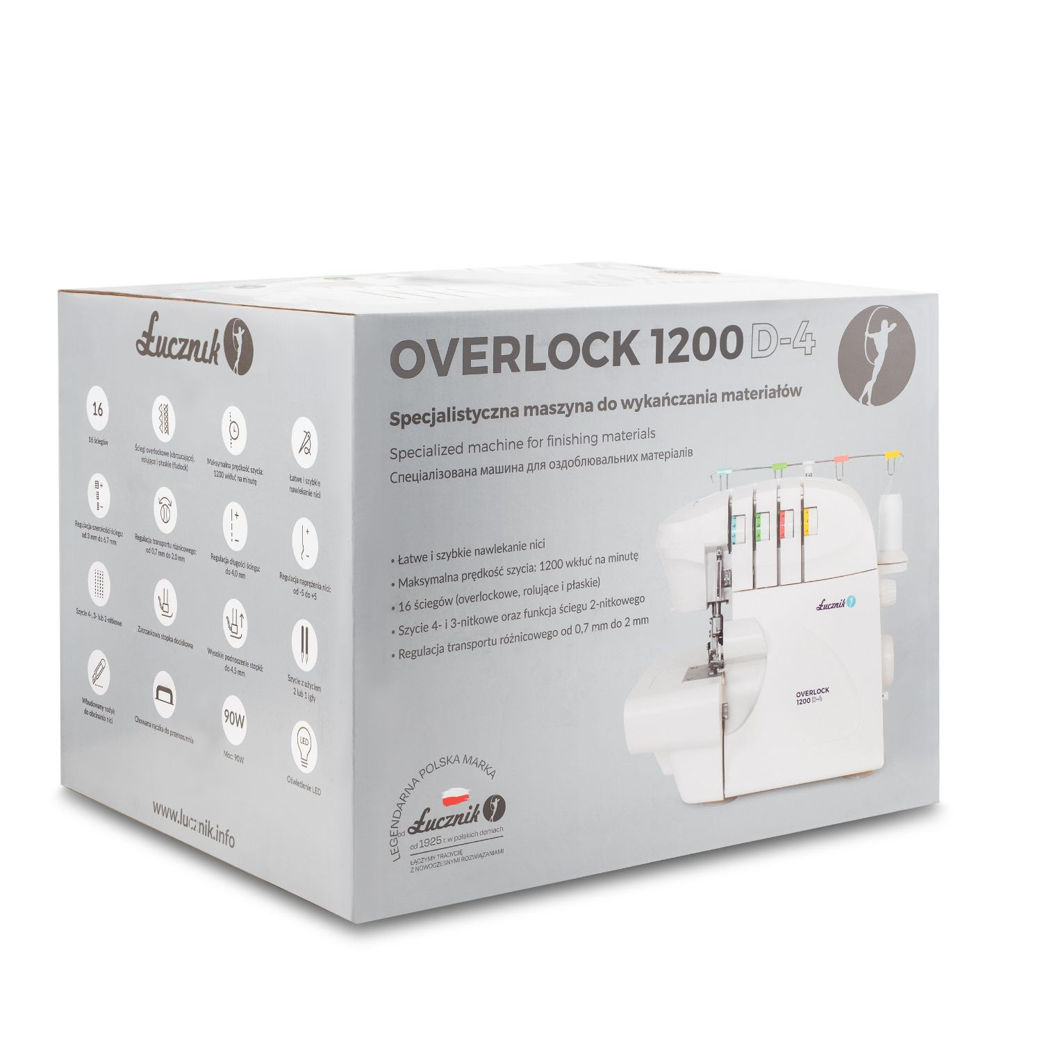 - Overlock Łucznik 1200D-4 to szybka i precyzyjna maszyna do profesjonalnego wykańczania krawędzi, idealna do domowego i półprofesjonalnego szycia różnorodnych tkanin.