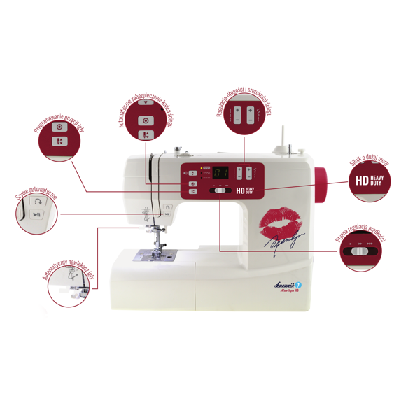 Перед вами єдина в своєму роді, унікальна і витончена Marilyn HD 2018, але нехай вас не вводить в оману її чарівний зовнішній вигляд! Marilyn - це машина з "силою", якій ви можете з упевненістю довірити всі види матеріалів, від ніжного шовку до жорсткого деніму.